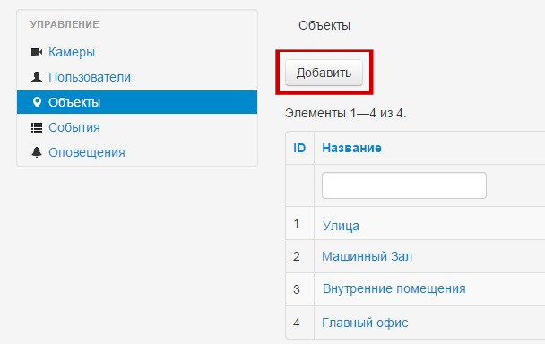 Новый объект создан. Теперь к нему нужно добавить камеры, которые подключены по указанному адресу.